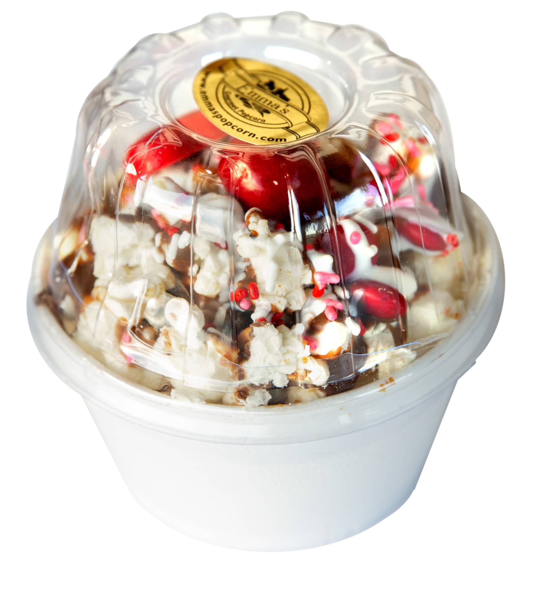 A single serving of our party pizzas in a cute sundae cup. Sweet & Salty Popcorn drizzled with chocolate and peanut butter, topped with Seasonal theme colored candies and a cherry. A perfect gift for that special someone!